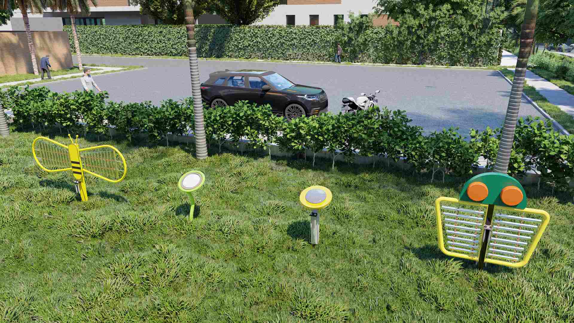 از دور به نظر می رسد که "آفتابگردان" در فضای باز شکوفا می شود. دیسک بالای زرد روشن پر جنب و جوش و چشم نواز است، مانند درخشان ترین رنگ در چشم کودکان. ستون های چوبی بافتی طبیعی و گرم دارند و به طور هماهنگ با محیط بیرون ترکیب می شوند. نکته قابل توجه تر این است که چکش ضربه زن مجهز به زیبایی طراحی شده است و استفاده از قسمت آویزان آن آسان است و به هر کودکی که می خواهد موسیقی را کاوش کند این امکان را می دهد که به راحتی سفری موسیقایی را آغاز کند. این رنگهای پویا و اشکال منحصربهفرد میتوانند فوراً به کانون چشم نواز فضاهای بیرونی تبدیل شوند و کنجکاوی و اشتیاق مردم را برای موسیقی بیدار کنند.